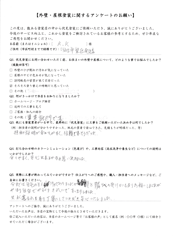 仙台市泉区K.K様|担当の説明がわかりやすく、信頼できそうだった