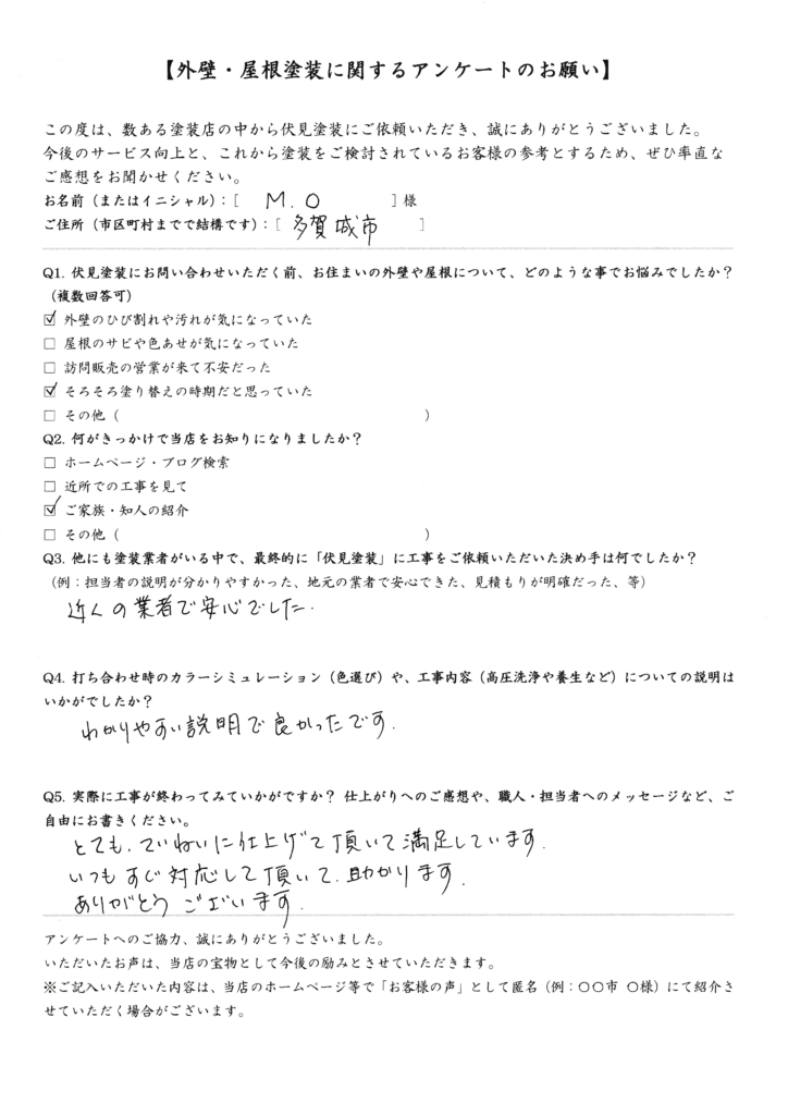 多賀城市M.O様|とても、ていねいに仕上げて頂いて満足しています