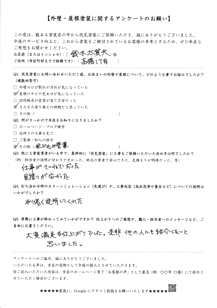 多賀城市鈴木太賀夫様|大変満足な仕上がりでした