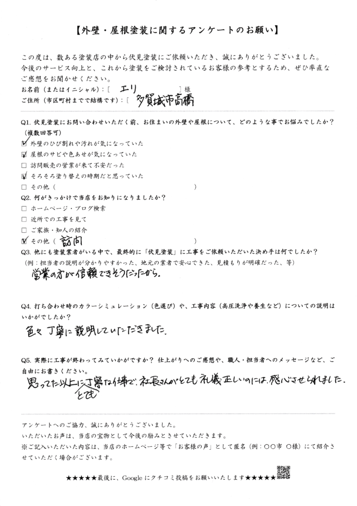 多賀城市エリ様|営業の方が信頼できそうだったから
