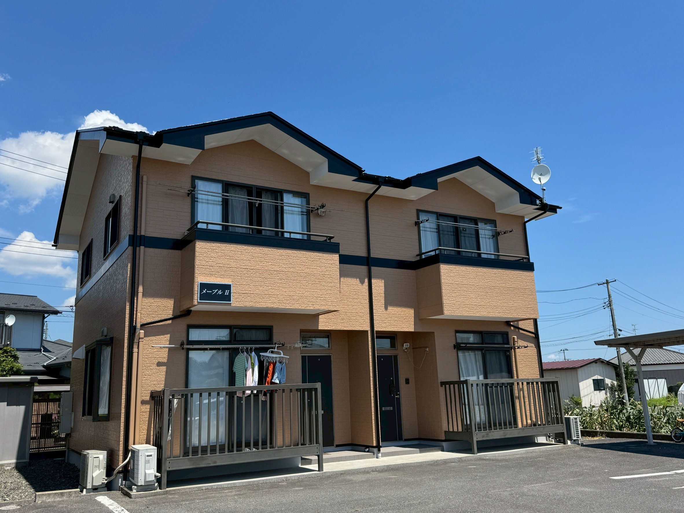 弊社の事務所からもとても近いアパートで、こうして地元のご縁でご依頼いただけたことが、私たちも本当に嬉しかったです。ツヤのあるきれいな仕上がりになり、まるで新築の頃以上に素敵になったのではないでしょうか。今後も、アパートのことで「ちょっと気になるな」ということがありましたら、いつでもお気軽にご相談くださいね。これからも初心を大切に一生懸命がんばりますので、今後とも末永いお付き合いをよろしくお願いいたします。