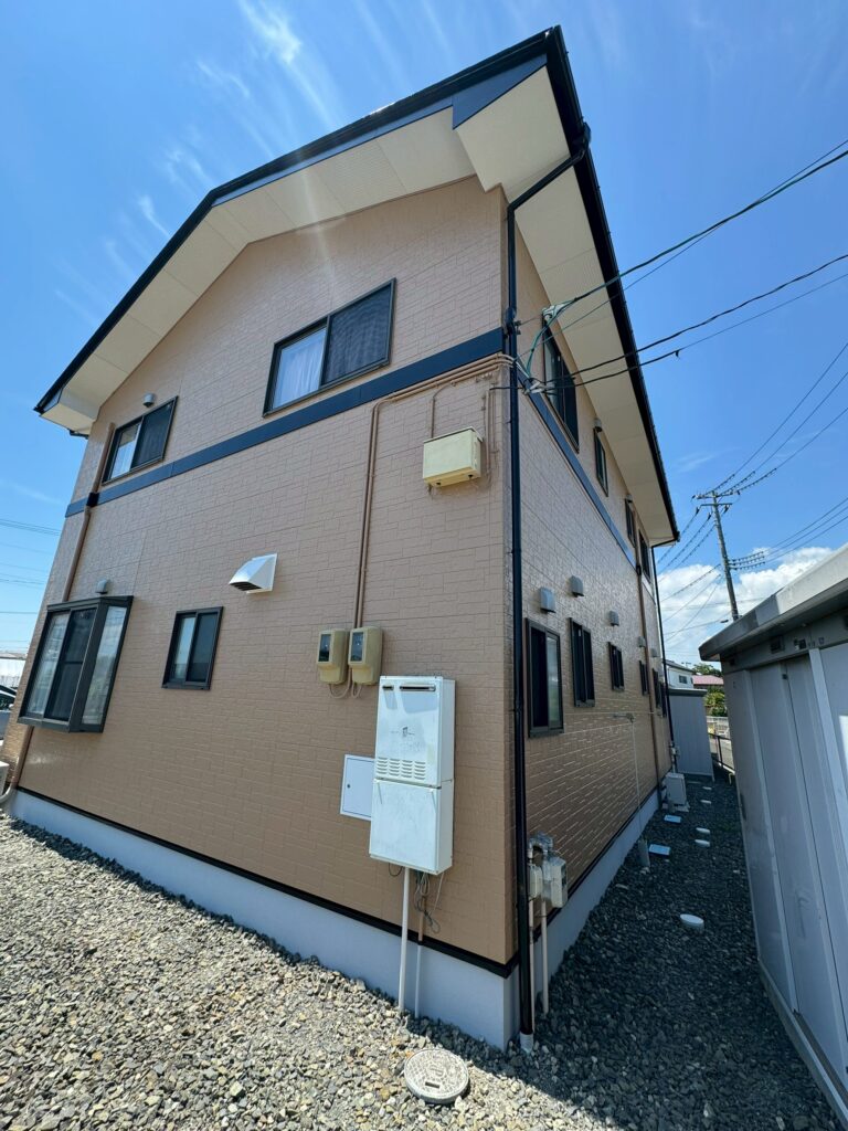 多賀城市E様アパート|シリコン塗料でアパートの外壁と屋根を塗装したらツヤツヤに仕上がった