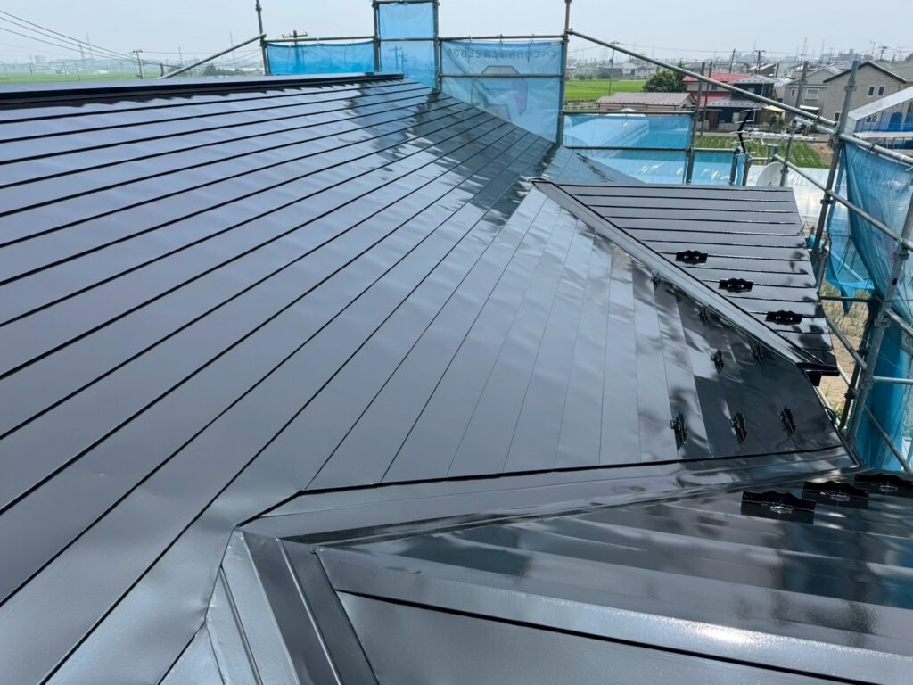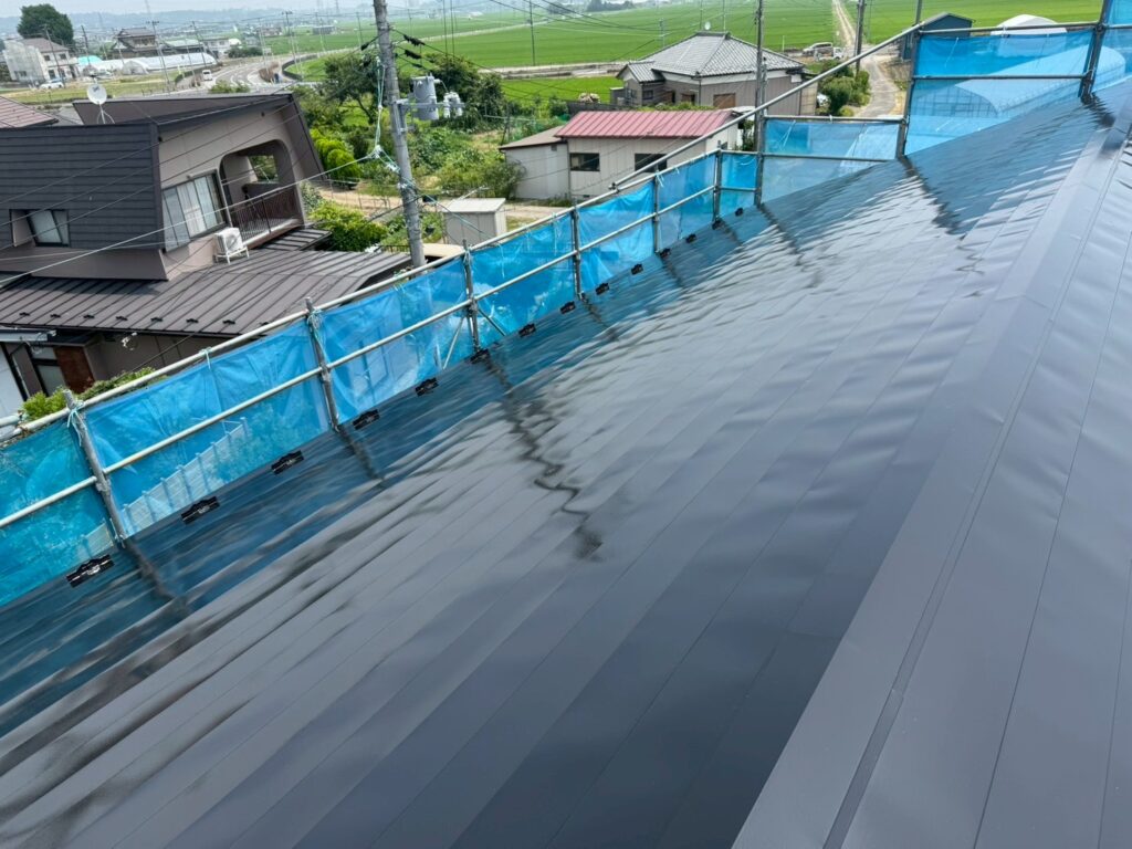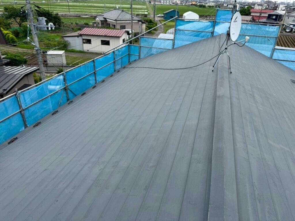 | 塗料(色) | 屋根:シリコン塗料・ファインルーフsi(ブラック) 外壁:シリコン塗料・ファインsi(ND-343) 雨樋塗装:シリコン塗料・ファインルーフsi(ブラック) 破風板塗装:シリコン塗料・ファインルーフsi(ブラック) 軒天:ケンエースG-II(N-90) 基礎:キソエース(N-75) ベランダ防水:シートトップ#100(フォックスグレー) |