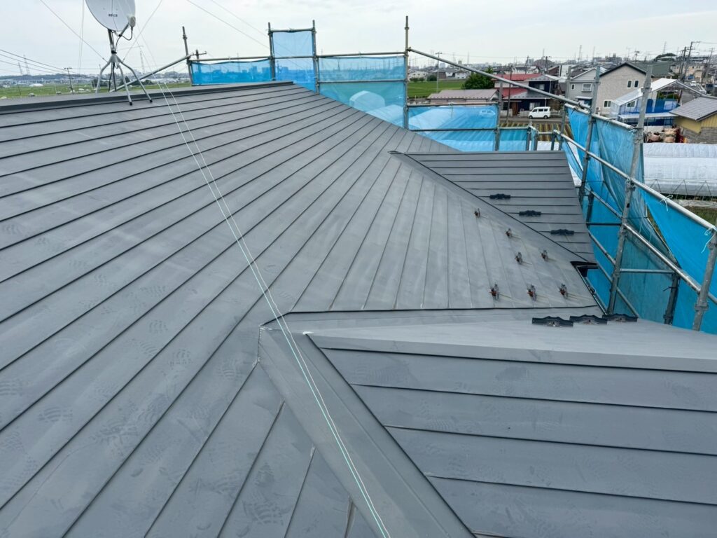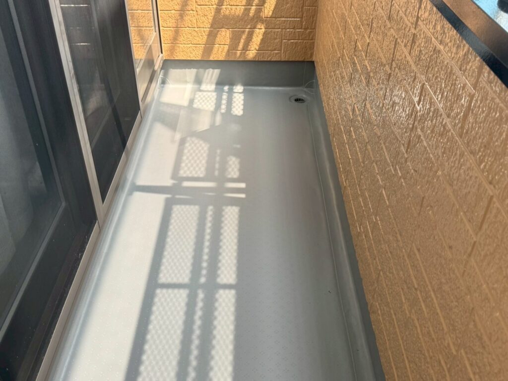屋根と付帯部(雨樋や破風板など)には日本ペイントのシリコン塗料のファインルーフSiを、外壁には同じくシリコン塗料のファインSiを使って丁寧に仕上げさせていただきました。合わせて、軒天や基礎の塗装、ベランダの防水工事もしっかりと行なっております。