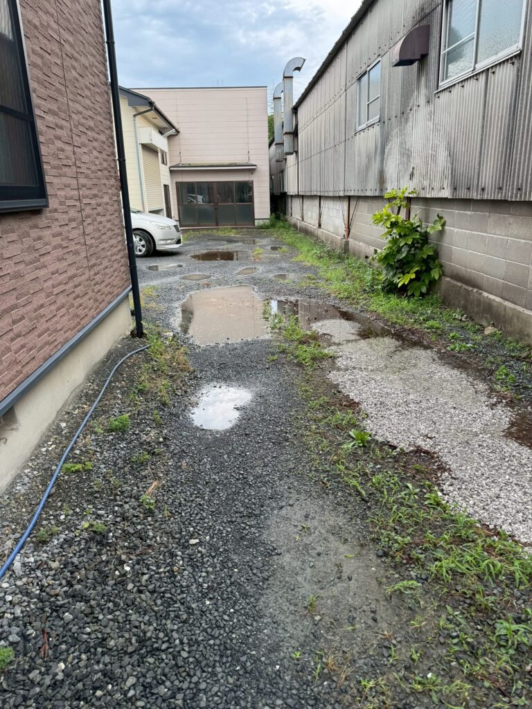 今回、お家の中はトイレ、寝室、廊下のクロスの剥がれが目立っていましたね。また、外の駐車スペースには水たまりができてしまい、お車を停めにくくお困りでした。