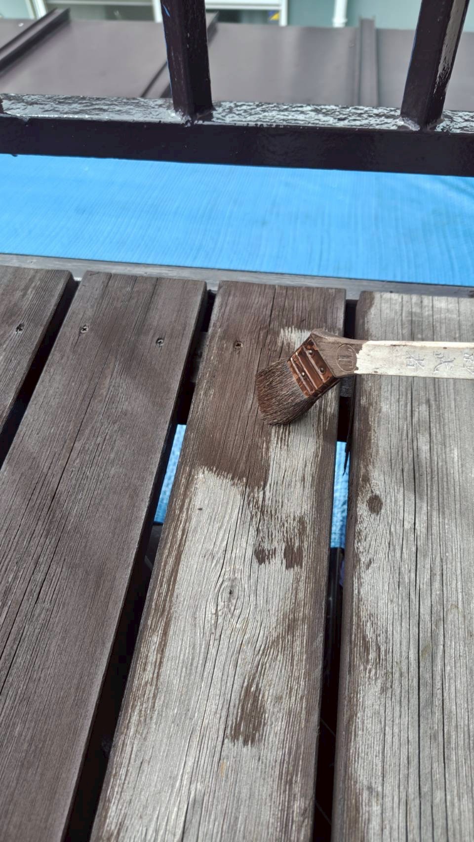 作業にあたり、鉄部には日本ペイントのシリコン塗料・ファインsiを、木部には前田工繊産資の木材保護塗料・ノンロットを使用しました。見違えるようにスッキリと、綺麗に仕上がったと思っております!