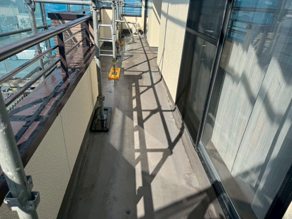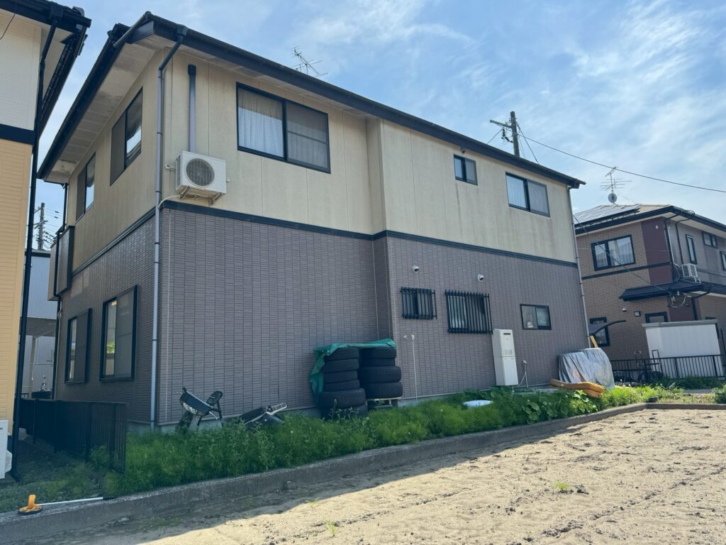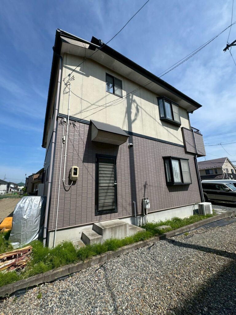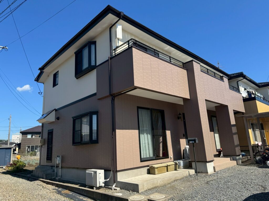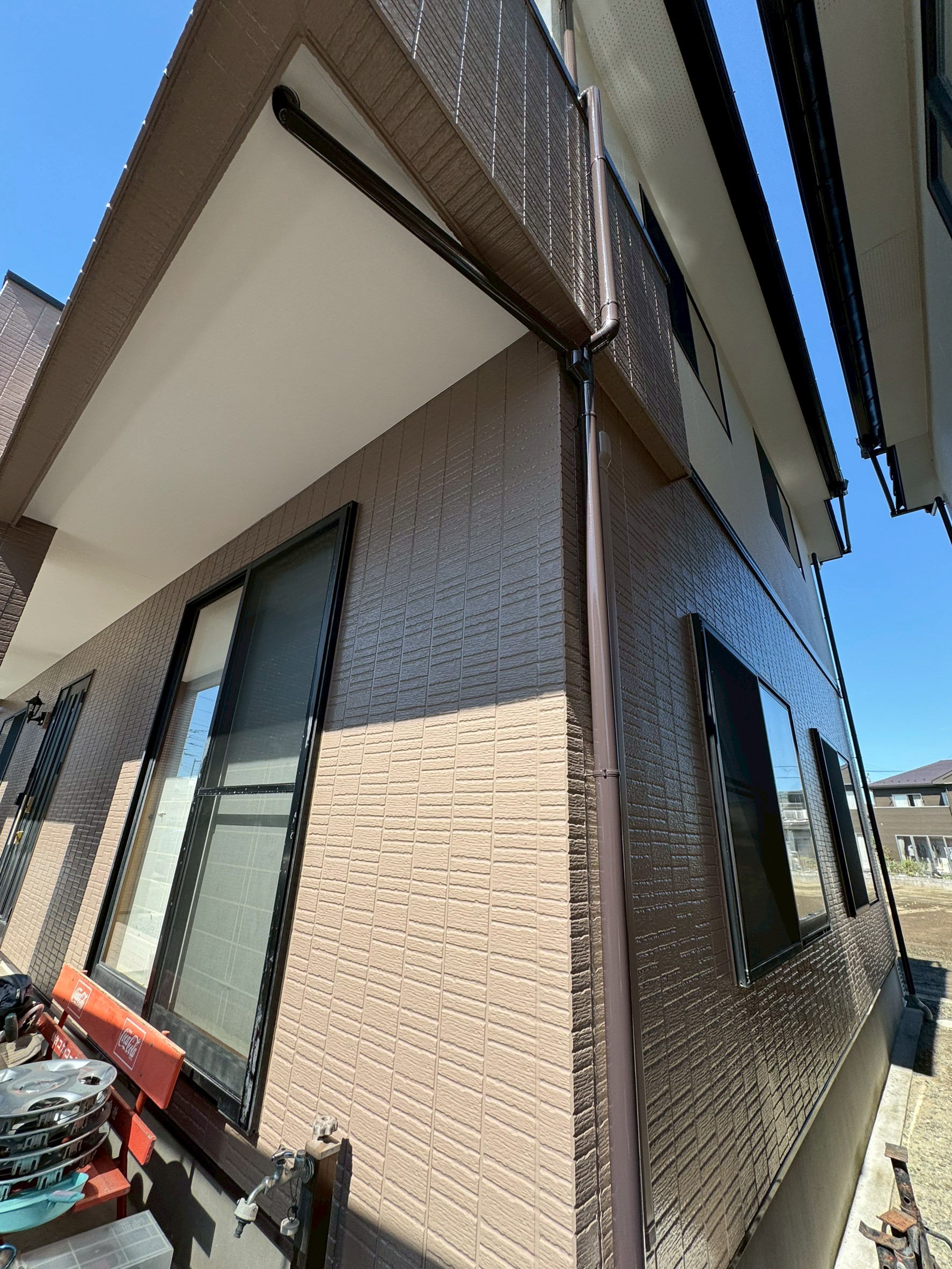 | 塗料(色) | 屋根:無機塗料・グランセラベスト 2液ファイン(コーヒーブラウン) 外壁:無機塗料・グランセラトップ2液水性(1階ND-342、2階ND-104) 雨樋:グランセラベスト 2液ファイン(コーヒーブラウン) 破風板:グランセラベスト 2液ファイン(コーヒーブラウン) 軒天:ケンエースG-II(白) ベランダ防水:シートトップ#100(フォックスグレー) |