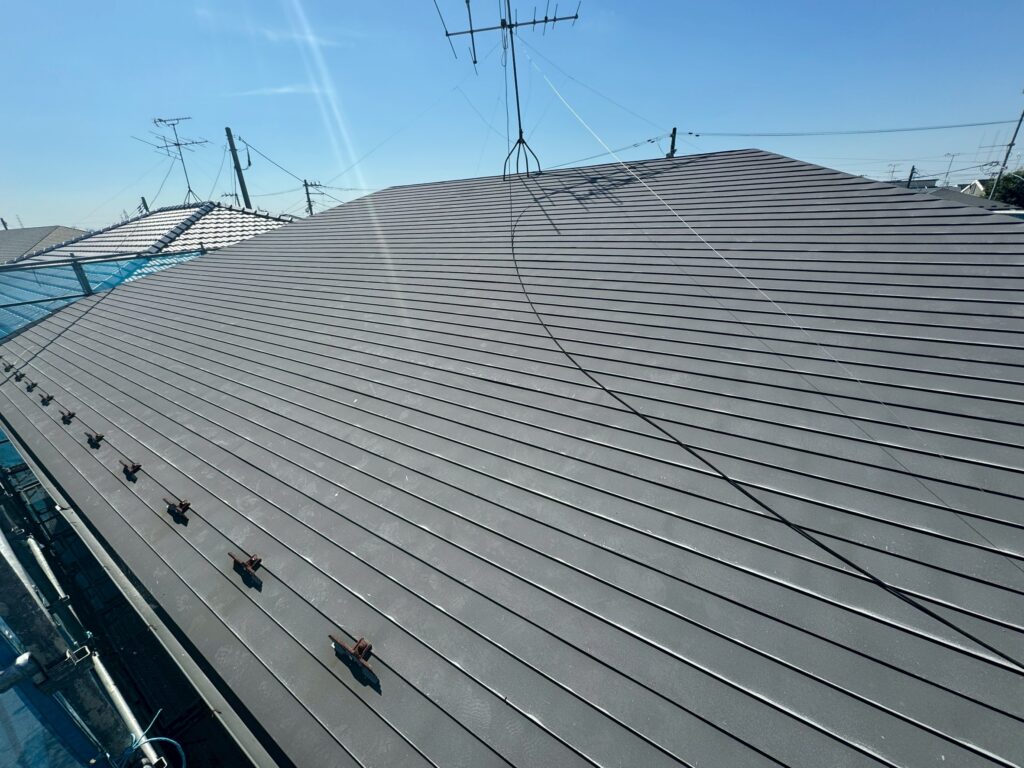 初めはラジカル塗料をご提案しておりましたが、山王のS様邸での無機塗料の仕上がりをご覧になり、とても気に入っていただけました。ラジカル塗料よりも少し費用はかかりますが、今回は屋根も外壁も無機塗料で塗装することになりました。使用したグランセラシリーズは、長持ちするだけでなく、上品なツヤが出るのが特徴なんですよ。