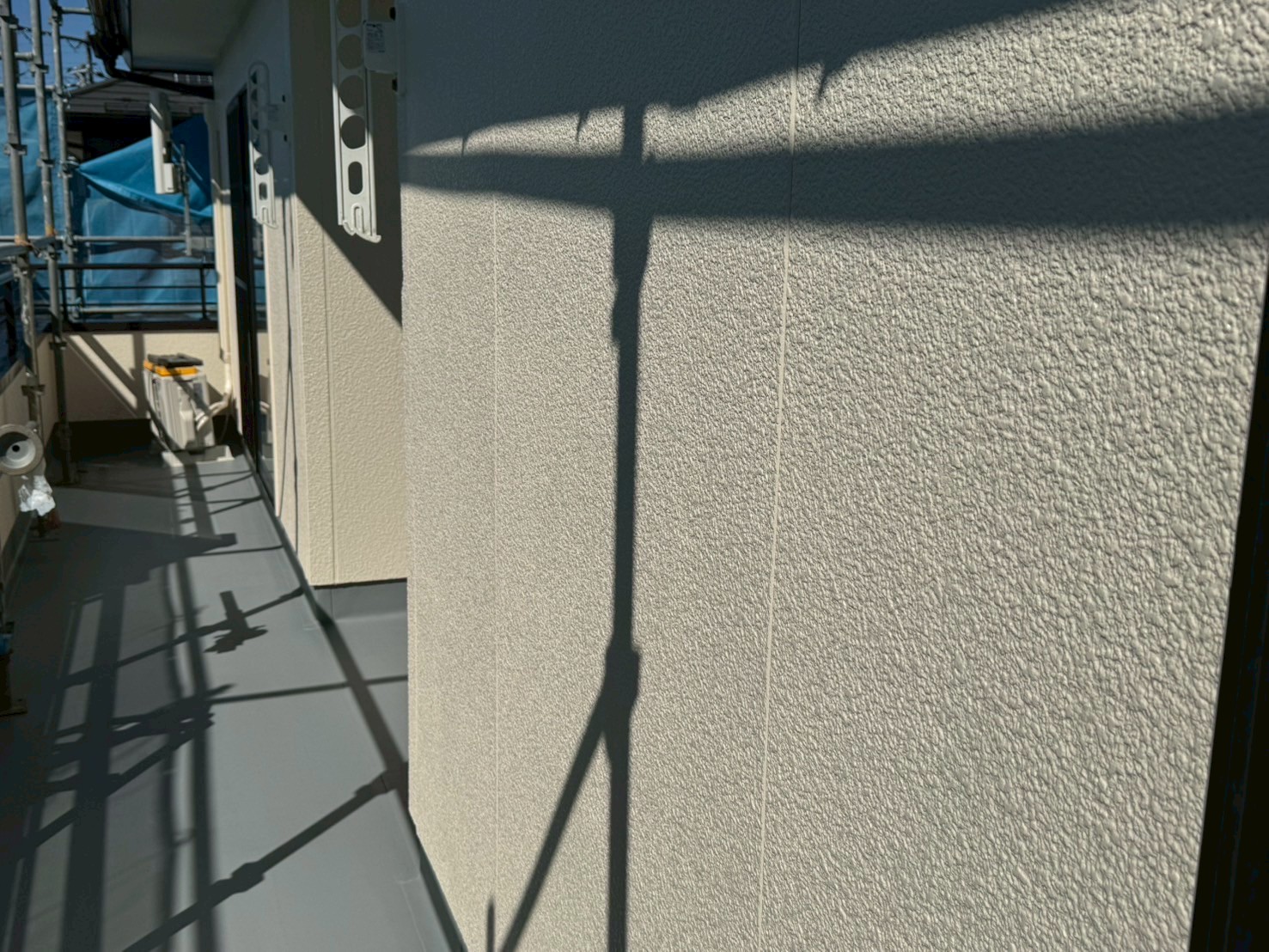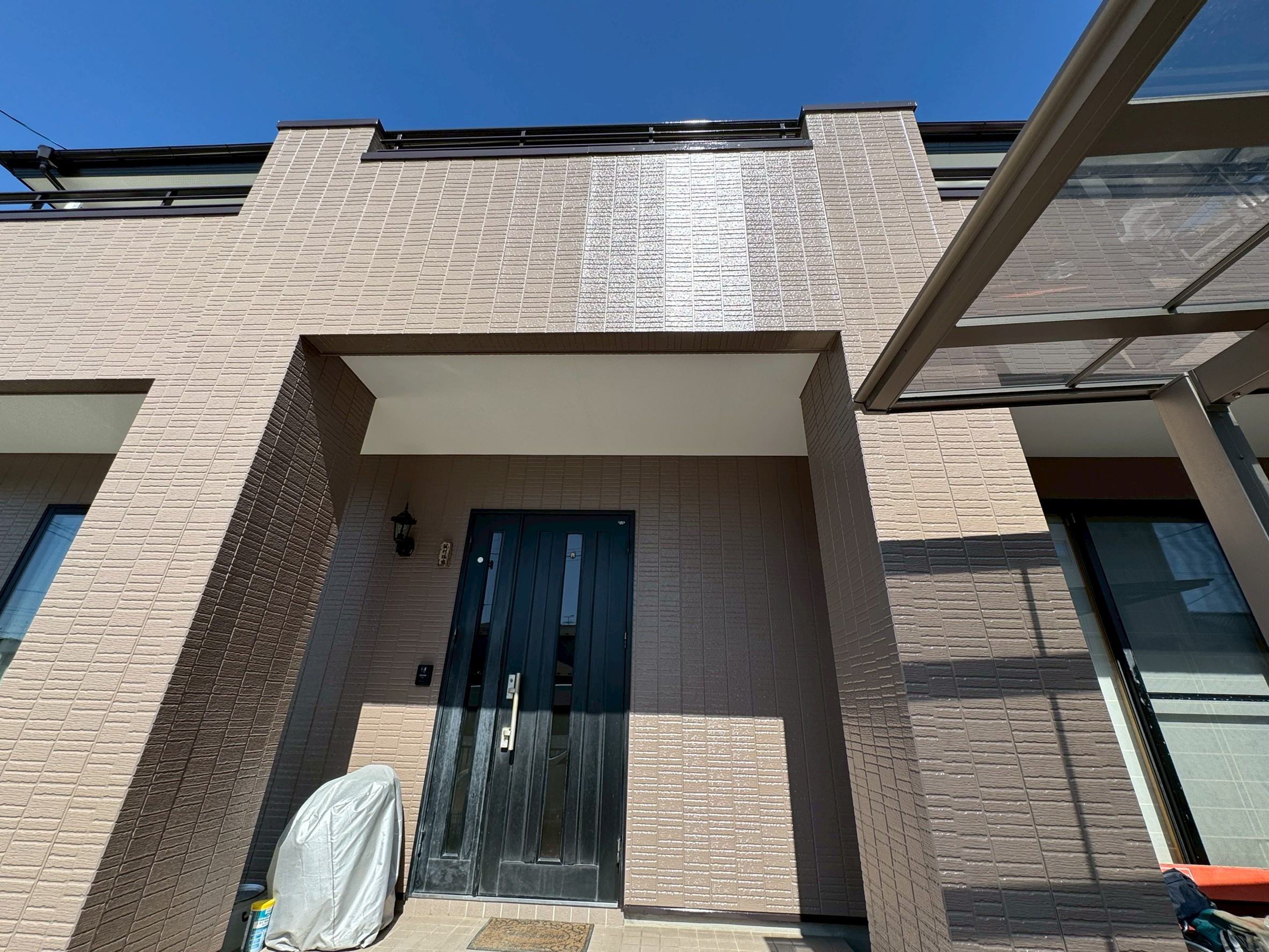 屋根や雨樋などには「グランセラベスト 2液ファイン」、外壁には「グランセラトップ 2液水性」と、どちらも日本ペイントの無機塗料を使用いたしました。また今回は、塗装やベランダの防水工事だけでなく、サビが出ていた屋根のアンテナ撤去と壁面への新しいデザインアンテナの設置、エアコン4台の取り付け、玄関灯やインターホンの交換、さらには網戸の張り替えなども一緒にお手伝いさせていただきました。