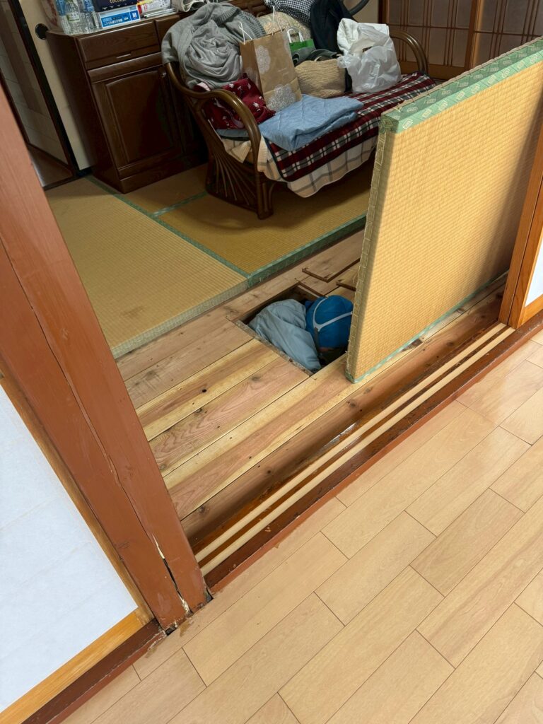今回は、お部屋のクロス張りと床張り、そしてシロアリ駆除の作業をさせていただきました。