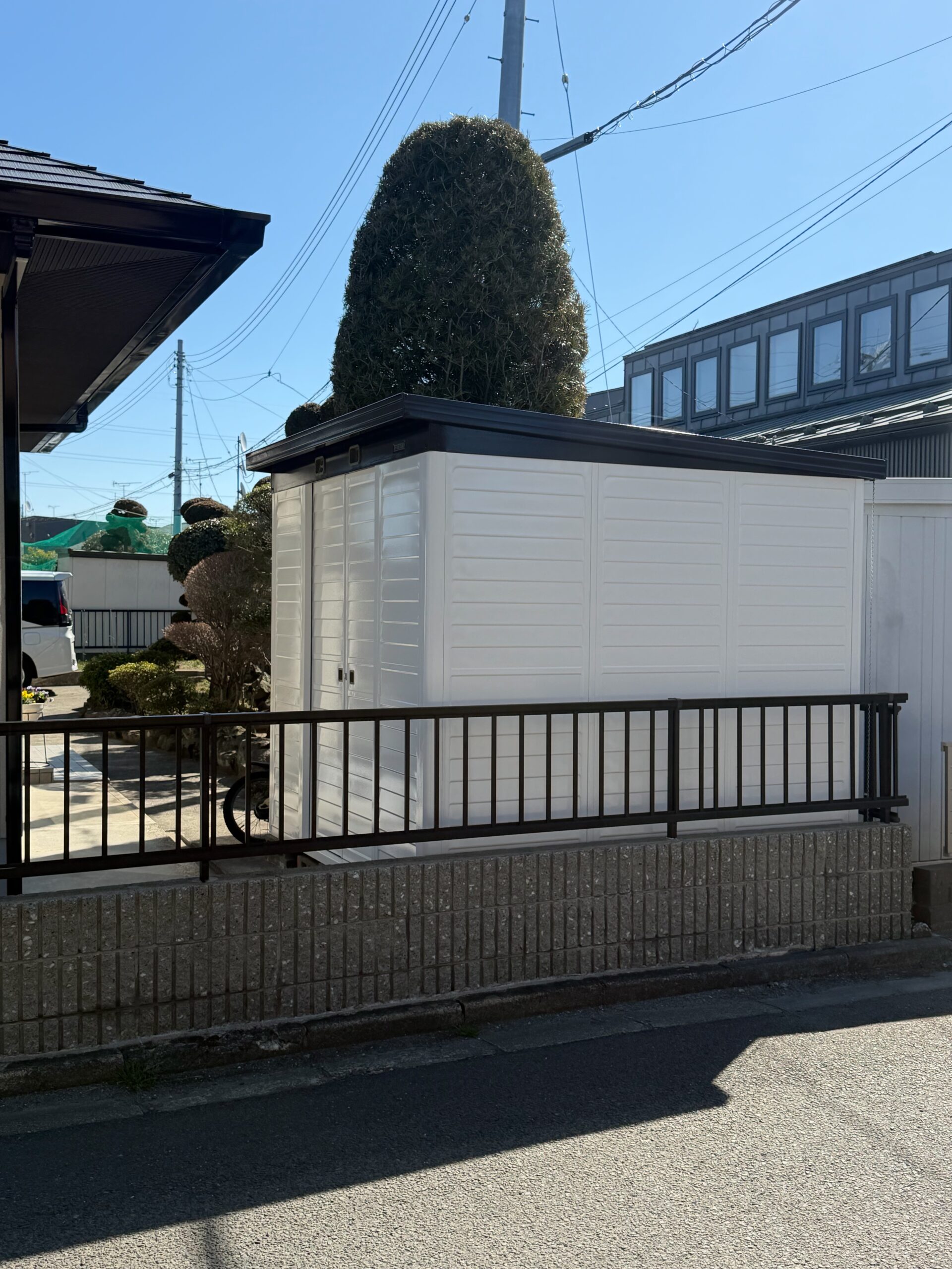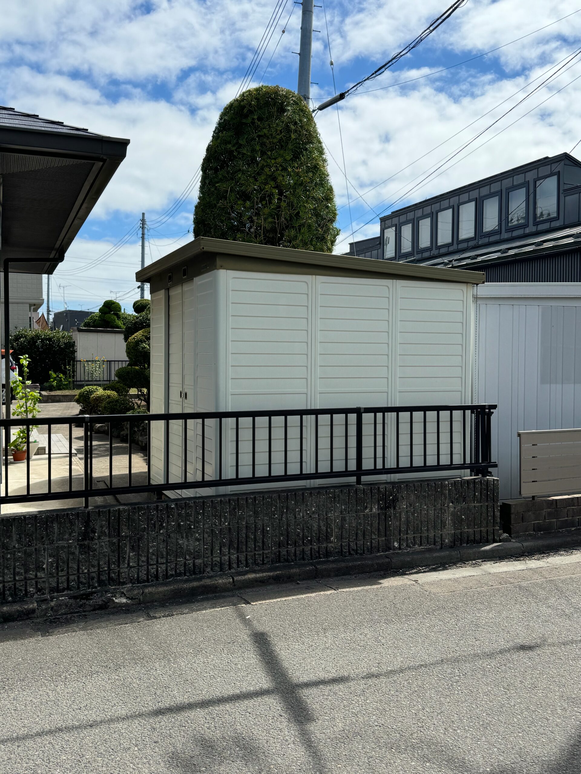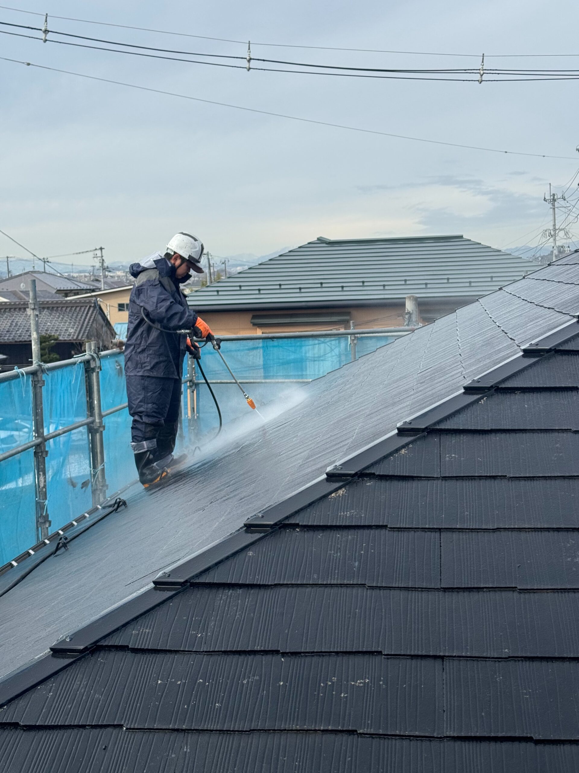 高圧洗浄の作業では、屋根に1日、外壁と付帯部に1日、門・塀・物置に半日と、合計2日半をかけて長年の汚れをしっかりと洗い流しました。この洗浄を丁寧に行うことが、塗料をしっかり密着させて長持ちさせるためにとても大切なんです。